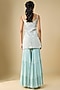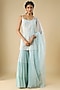 Featuring a powder blue kurta in organza and viscose georgette base with floral cutwork hand and machine embroidery. It is paired with layered sharara pants and a dupatta. Accentuate it with statement earrings and heels for a festive occasion or sangeet ceremony.