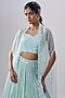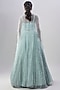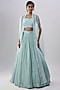 Featuring a powder blue lehenga in organza and viscose base with zari, thread and sequins embroidery. It is paired with an embroidered blouse and a dupatta. Accentuate it with pearl or zircon jewellery and heels for a wedding or sangeet ceremony.