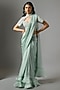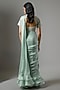 Powder Blue Satin Organza Floral Cutwork Ruffled Saree Set