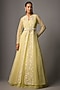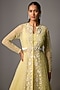 Featuring a powder yellow jacket in net base with embroidery. It is paired with a bustier and a skirt. Accentuate it with statement earrings and sleek heels for a high-fashion edge, perfect for cocktail parties, receptions and glamorous evening events.
