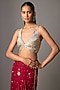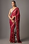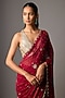 Featuring a red saree in chiffon base. It is paired with a blouse having sequins and zari hand embroidery. Accentuate it with statement jewellery and heels for a sangeet ceremony.