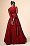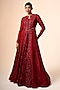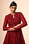 Featuring a red paneled jacket in organza base with jaal, pearl chitta and floral cutwork. It is paired with a bustier and an organza skirt. Accentuate it with gold statement jewellery and heels, perfect for wedding receptions, festive evenings or sangeet nights.