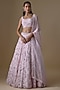 Soft Pink Organza Floral Motif & Thread Embroidered Lehenga Set