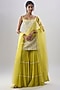 Featuring a yellow kurta in organza and viscose georgette base with floral cutwork, hand and machine embroidery. It is paired with layered sharara pants and a dupatta. Accentuate it with pearl or zircon jewellery and heels for a wedding or haldi ceremony.