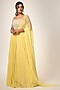 Yellow Viscose Georgette Hand Embroidered Gathered Lehenga Set