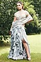 Ice Grey Foil Satin Ruffled Gown With Blouse