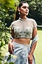Featuring an ice grey ruffled gown in foil satin and glazed organza base. It is paired with an embroidered blouse. Style this look with chandbali earrings, a chic potli, and heels for the perfect sangeet outfit.