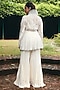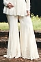 Featuring an ivory ruffled collared jacket in chiffon organza and imported chantilly net base with embroidery. It is paired with sharara pants and a bustier. Style this look with chandbali earrings, a chic potli, and mojaris for the perfect festive outfit.