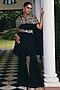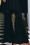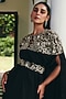 Featuring a jade black cape in imported satin base with embroidery. It is paired with a top and flared pants. Style this look with gold earrings, a chic clutch, and heels for evening soirees.