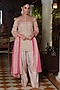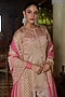 Featuring a mocha brown kurta in chanderi silk, cotton and glazed organza base with embroidery. It is paired with embroidered farshi salwar pants, including a mocha and fandango pink dupatta. Style this designer kurta set look with chandbali earrings, a chic potli, and mojaris for the perfect engagement or a festive outfit.