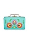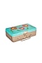 Featuring an aqua blue and gold mini trunk clutch in metal base with hand painted colorful floral design. It has art silk underlining and a detachable sling.