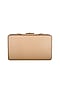 Featuring a black and gold mini trunk clutch in metal base with hand painted dot design. It has art silk underlining and a detachable sling.