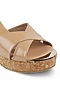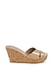 Featuring a pair of beige slip-on wedges in patent faux leather base with pattern. It has a synthetic underlining and 4 inch cork heels.
