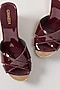 Featuring a pair of burgundy slip-on wedges in suede base with cross straps. It has 4.0-inch platform heels, 4mm cushioned foot bed and a TPR sole. Elevate your stride with timeless elegance and exceptional craftsmanship, perfect for any festive occasion or cocktail party.