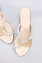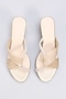 Champagne Gold Faux Leather Pearl Embellished Pleated Wedges
