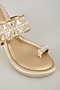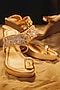 Featuring a pair of champagne gold wedges in faux leather base. It has 3-inch heels. Designed for both style and comfort, these heels add a touch of elegance to any outfit, making them perfect for special occasions and festive wear.