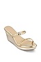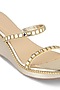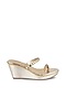 Featuring a pair of gold wedges in faux leather base with embellishments. It has a synthetic underlining and 3.25 inch heels.