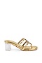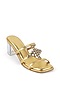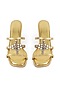Featuring a pair of gold block heels in faux leather base with studded mirror embroidery. It has a suede underling and 2.5-inch heels. Perfect wear for a wedding or festive occasion.