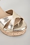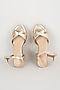 Featuring a pair of gold heels in faux leather base. It has a 4.5-inch heels. Elevate your stride with timeless elegance and exceptional craftsmanship, perfect for any festive occasion or cocktail party.