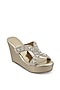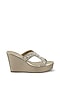 Featuring a pair of light gold wedges in faux leather base with diamond embellishment. It has a faux leather underlining and 3.25-inch heels. Perfect wear for a wedding or festive occasion.