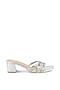 Featuring a pair of silver sandals in faux leather base with straps. It has a synthetic underlining and 2.5 inch metallic block heels.