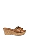 Featuring a pair of tan cork wedges in faux leather base with embellishment. It has a faux leather underlining and 3.0-inch heels. Ideal for both formal and festive occasions.