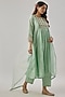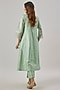 Featuring an aqua blue kurta in chanderi silk base with zardosi and zari embroidery. It is paired with pants and an organza dupatta. Style this set with oxidized earrings and Kolhapuri sandals for a relaxed day out.
