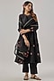 Featuring a black kurta in chanderi silk base with floral embroidery. It is paired with pants and a sheer organza dupatta. Style this set with oxidized earrings and Kolhapuri sandals for a relaxed day out.