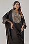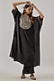 Featuring a black kaftan in silk base with sequins embroidery. It is paired with an inner and pants. Style this set with oxidized earrings and Kolhapuri sandals for a relaxed day out.