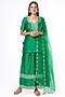 Featuring an emerald green kurta in chanderi silk base with resham, zardosi, cutdana and pearls embroidery. It is paired with matching palazzo pants and an organza dupatta.