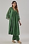 Featuring a green kurta in chanderi silk base with aari embroidery. It is paired with pants and an organza dupatta. Style this set with oxidized earrings and Kolhapuri sandals for a relaxed day out.