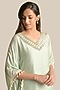 Featuring a green kaftan in silk base with pitta and resham embroidery. It is paired with flared pants. Style it with dangler earrings and heels for a sangeet or festive ceremony.