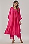 Pink Silk Aari Embroidered Kaftan Set