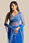 Featuring a royal blue saree in organza and silk base with hand embroidery. It is paired with a blouse. Style it with statement jewellery and heels for a wedding or festive occasion.