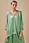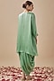 Featuring a sage green draped skirt in silk base. It is paired with an asymmetric top having zardosi work. Accentuate with statement jewellery and heels for mehendi ceremonies or festive occasions.