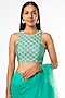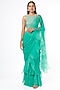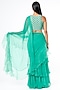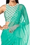 Featuring a teal green draped saree in chanderi silk and chiffon base with beads, sequins, resham and pearl embroidery. It is paired with a matching blouse.
