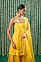 Featuring a yellow kurta in silk base with pitta, resham and zardosi embroidery. It is paired with sharara pants and an organza dupatta. Accentuate it with kundan polki jewellery and juttis for festive celebrations, weddings or haldi ceremony.
