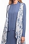 Featuring a blue dress in denim base. It is paired with a contrasting lace waterfall coverall.