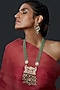 Featuring a gold finish handcrafted long necklace studded with kundan polki beads, and pearls, set in mixed metal. It is paired with a matching pair of earrings.