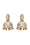 Featuring a pair of 22kt gold plated handcrafted jhumka earrings studded with kundan polki, ghungroo and pearls, set in mixed metal.