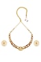 Featuring a 22kt gold plated necklace studded with kundan polki and ruby stones, set in mixed metal. It is paired with a matching pair of earrings. Perfect for weddings, engagements and festive occasions, this lightweight, intricately designed piece adds timeless elegance for brides and guests alike.