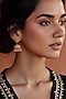 Featuring a pair of 22kt gold plated jhumka earrings with semi-precious stones, set in mixed metal. Perfect for weddings, engagements and festive occasions, this lightweight, intricately designed piece adds timeless elegance for brides and guests alike.