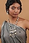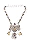 Featuring a two-tone finish temple beaded long necklace studded with nandi bull, set in mixed metal. It is paired with matching pair of earrings.