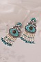 Two-Tone Finish Turquoise Semi-Precious Stone & Pearl Dangler Earrings