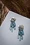 Featuring a pair of aqua and white stud earrings studded with shell pearls, semi precious stones, metallic beads, and glass beads, set in mixed metal.