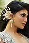 Featuring a pair of gold finish stud earrings studded with oval pearl, set in mixed metal.