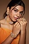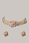 Featuring a gold finish choker necklace studded with multi-colored stones and pearls, set in mixed metal. It is paired with a matching pair of earrings, bracelet and a ring.