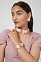 Featuring a gold finish choker necklace studded with pearls and semi precious stones, set in mixed metal. It is paired with a matching pair of earrings, a ring, and a bracelet.