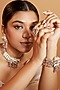 Featuring a gold finish choker necklace studded with shell and agates, set in mixed metal. It is paired with a matching pair of earrings, bracelet and a ring.