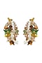 Featuring a pair of gold finish handcrafted earrings studded with semi-precious stones, shells, and pearls, set in mixed metal.